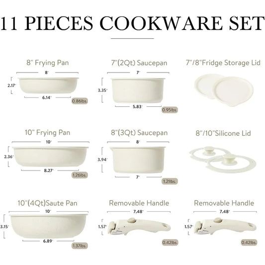 CAROTE 11 piece Pots and Pans Set, Nonstick Cookware Sets with Detachable Handle